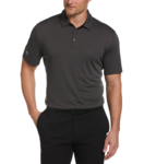 4.9-oz, 70/30 performance polyester/recycled polyester double-knit jacquard Self-fabric collar 3-button placket Open sleeve Double needle hemmed bottom with side vents Contrast embroidered Pete logo on right sleeve Moisture wicking Breathable Classic fit.